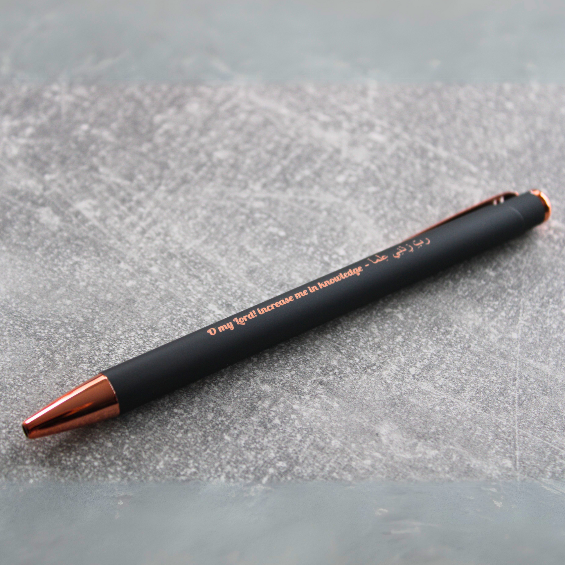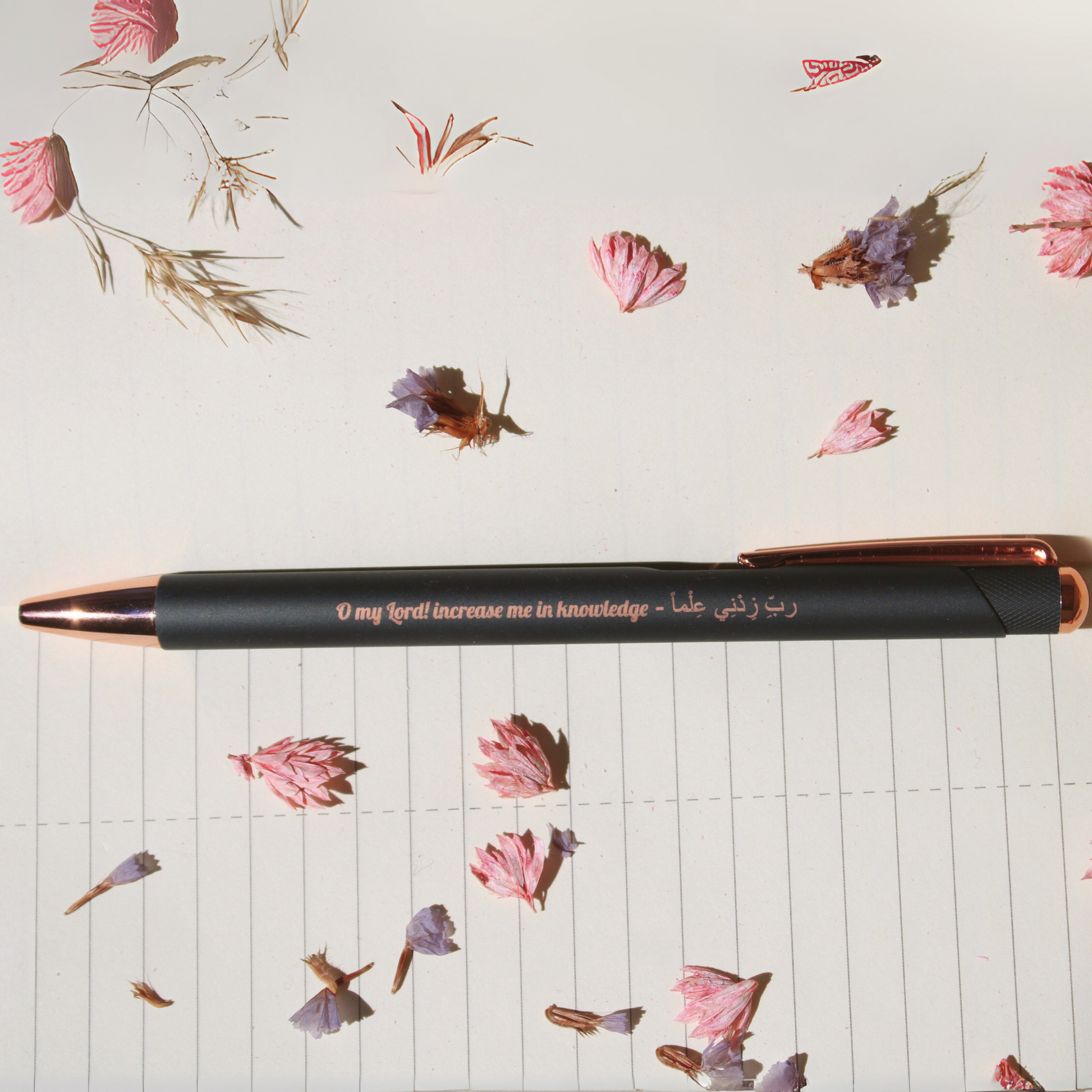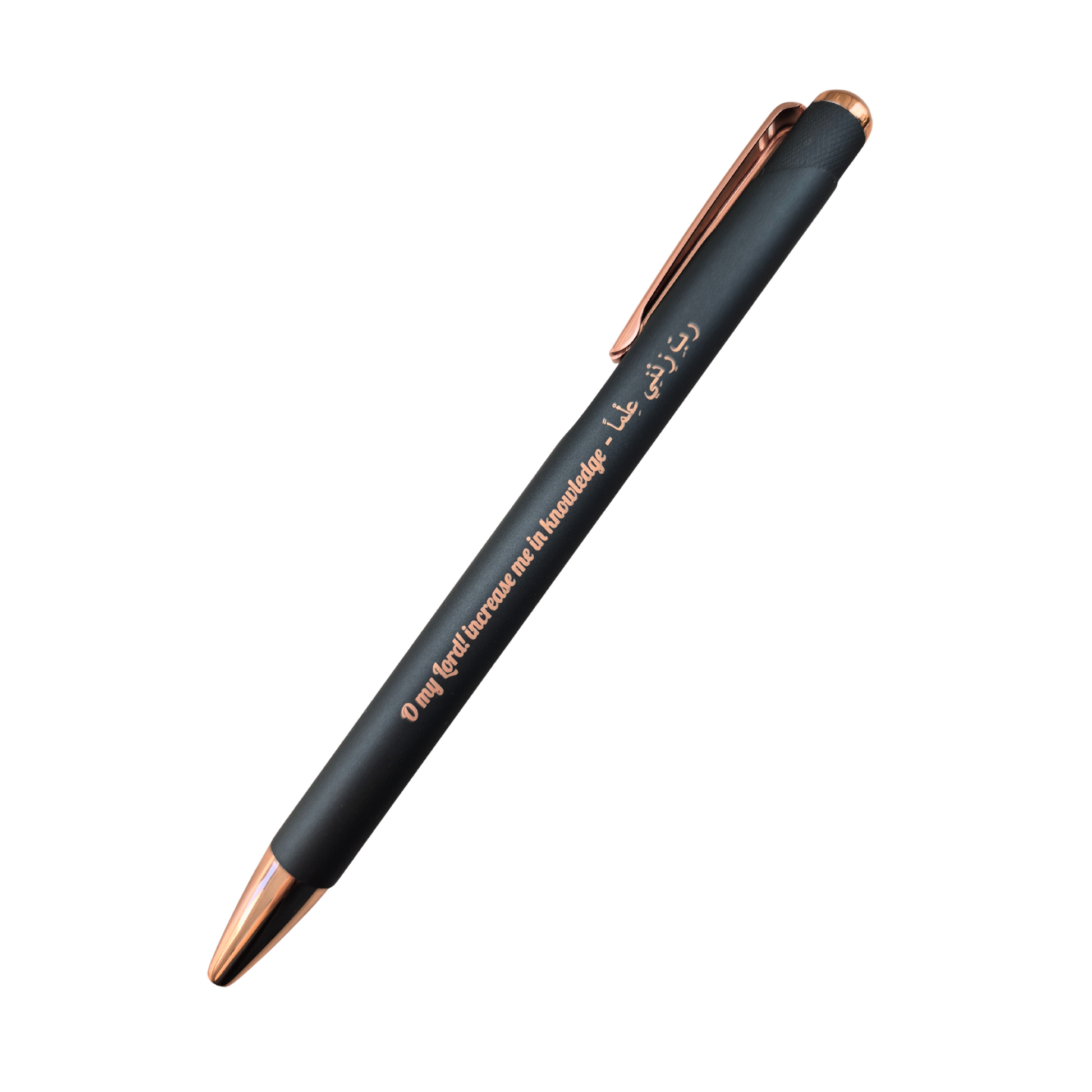 Dieser hochwertige Stift trägt die Gravur „رَبِّ زِدْنِي عِلْمًا“ – eine Bittgebet aus dem Koran (Sure Tāhā, 20:114), in dem Allah den Propheten Muhammad ﷺ anweist, zu sprechen: