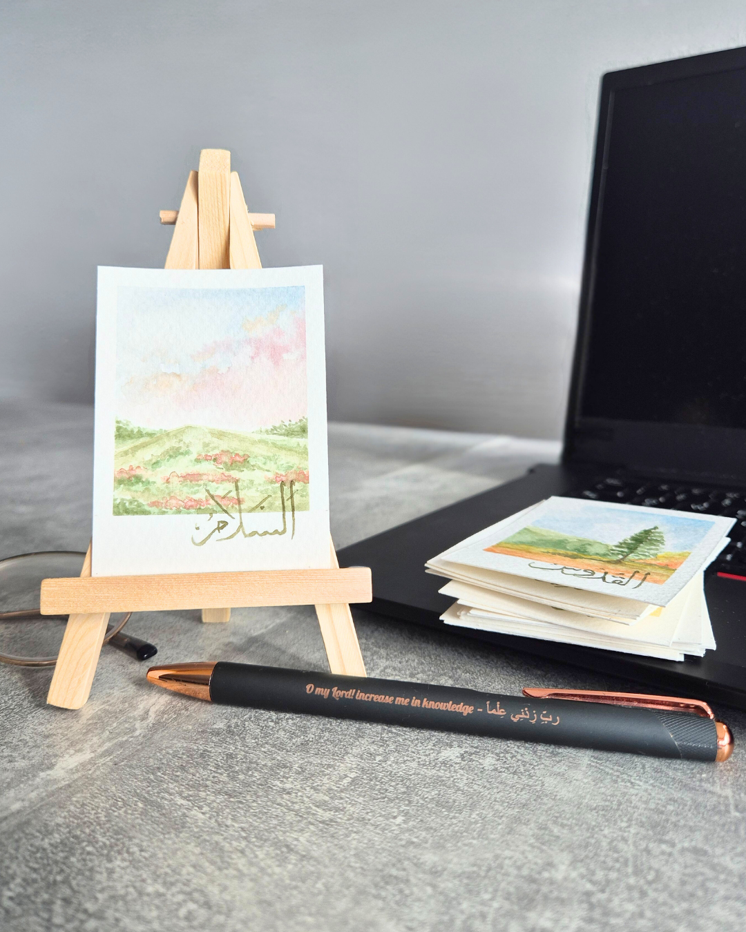 Die Kollektion der 99 schönen Namen Allahs vereint handgemalte kunstvolle Aquarellmalerei und traditionelle Kalligrafie. Jedes Motiv trägt eine eigene Botschaft und lädt dazu ein, die Bedeutung dieser Namen zu entdecken. Mit jedem einzelnen Druck, liebevoll im Format 6x8 cm gefertigt, holst du ein Stück spirituelle Inspiration in deinen Alltag als Dekoration, als Geschenk oder als persönliche Erinnerung. Jeder Kunstdruck wird hochwertig reproduziert, damit die feinen Strukturen und Farben der handgemalten Originale auch langfristig erhalten bleiben.